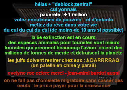votez enculeuses de pauvres... et d'enfants, mettez du rêve dans votre vie, du cul du cul du cul (de moins de 10 ans si possible)